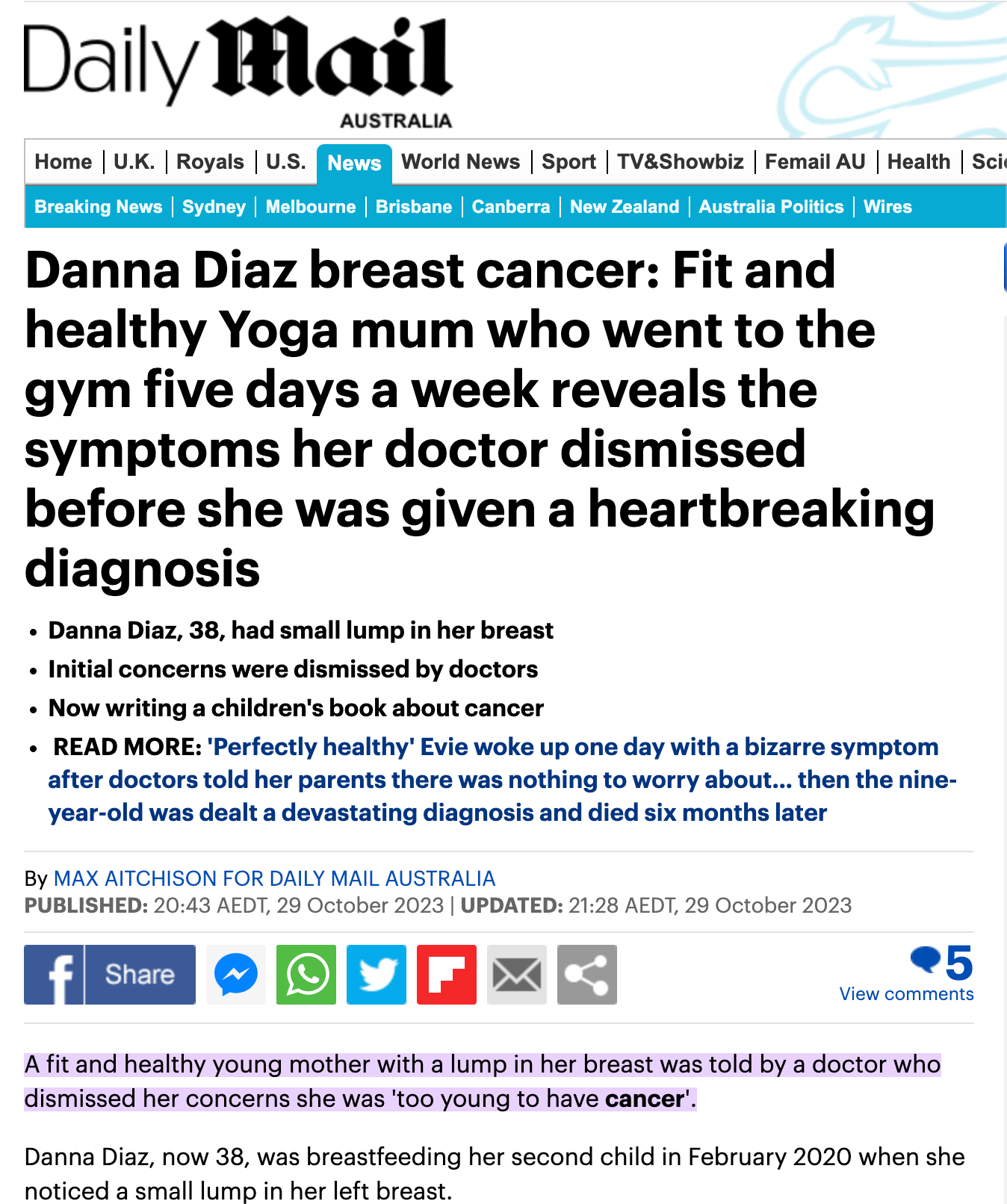Signs and symptoms of breast cancer: This fit Aussie mum ignored a niggling feeling. Then came the bombshell...